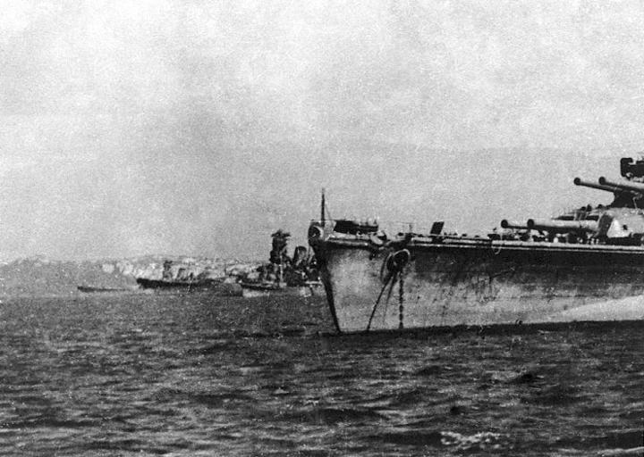 | Keywords: Yamato at Brunei.jpg Japanese Battleships at Brunei Borneo October 1944 Photographed just prior to the Battle of Leyte Gulf Ships are from left to right Musashi Yamato a cruiser and Nagato Courtesy of Mr Kazutoshi Hando 1970 U S Naval Historical Center Photograph Source http //www history navy mil/photos/sh-fornv/japan/japsh-xz/yamato-k htm PD-Japan-oldphoto Musashi ship 1942 Black and white photographs Yamato ship 1941 Nagato ship 1920 | ||||
