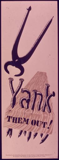| Keywords: "YANK THEM OUT" - NARA - 515368.tif Scope and content General notes 515368 Local identifier 44-PA-1697 Office for Emergency Management Office of War Information Domestic Operations Branch Bureau of Special Services 03/09/1943 - 09/15/1945 Still Picture Records Section Special Media Archives Services Division NWCS-S National Archives at College Park 8601 Adelphi Road College Park MD 20740-6001 1941 - 1945 Record group Record Group 44 Records of the Office of Government Reports 1932 - 1947 Record group ARC 373 World War II Posters compiled 1942 - 1945 Series ARC 513498 File unit File unit ARC Variant control numbers NAIL Control Number NWDNS-44-PA-1697 yes Other versions <gallery> File YANK_THEM_OUT _-_NARA_-_515368 tif tif File YANK_THEM_OUT _-_NARA_-_515368 jpg jpg </gallery> NARA-cooperation PD-USGov World War II posters about tools from the United States NARA TIF images with categorized JPGs Nails in art |
