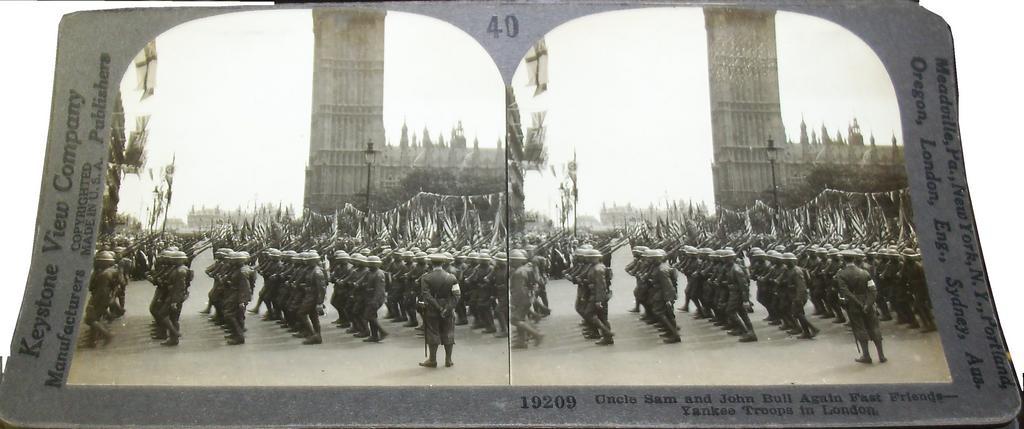 MAKE A MEME View Large Image Yankee Troops in London WWI - Stereocard.JPG World War I photo of stereocard by User Roseohioresident at village museum in Auburn Township Tuscarawas County Ohio Ragersville Ohio Keystone View Company copyright ~ 1919 public domain ...