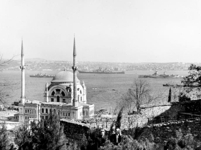 | Keywords: Yavuz (Goeben) battlecruiser Istambul April 1946.jpg en The U S Navy battleship USS Missouri BB-63 center off Istanbul Turkey 5-9 April 1946 The destroyer USS Power DD-839 is at left and the Turkish battlecruiser Yavuz formerly the German Goeben is at right Dolmabahce Mosque is in the foreground Official U S Navy photo http //www history navy mil/our-collections/photography/us-navy-ships/battleships/missouri-bb-63/80-G-366179 html 80-G-366179 from the U S Navy http //www history navy mil Naval History and Heritage Command Official U S Navy Photograph between 1946-04-05 1946-04-09 File Yavuz Goeben battlecruiser Istambul April 1946 - cropped jpg PD-USGov-Military-Navy USS Power DD-839 USS Missouri BB-63 1944-1955 TCG Yavuz B-70 Münir Ertegün April 1946 in Turkey 1946 in Istanbul Ships on the Bosphorus |