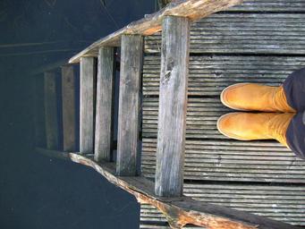 Keywords: yellow boots web head wood pier