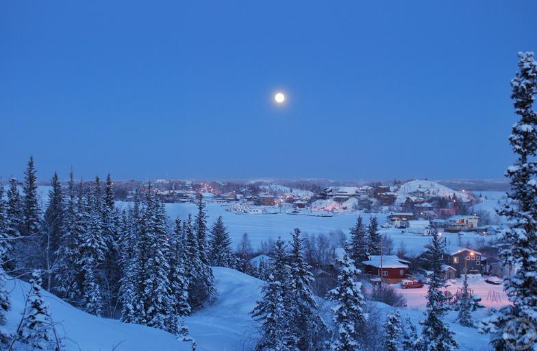 Keywords: yellowknife northwest territories winter night canada moon snow trees