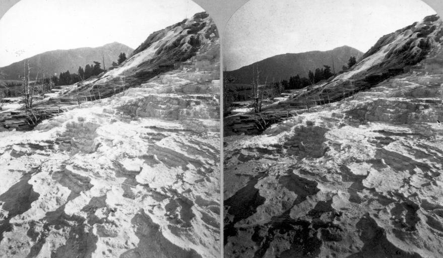Keywords: stereoscopic stereophotography stereophotographs historical usgs history geology mapping black and white blackandwhite bnw stereograph blackandwhite monochrome outdoor mountainside landscape black and white Yellowstone National Park, Wyoming. Mammoth Hot Springs. 1872.U.S. Geological and Geographical Survey of the Territories (Hayden Survey). Stereoscopic view. Yellowstone National Park, Wyoming. Mammoth Hot Springs. 1872.U.S. Geological and Geographical Survey of the Territories (Hayden Survey). Stereoscopic view.