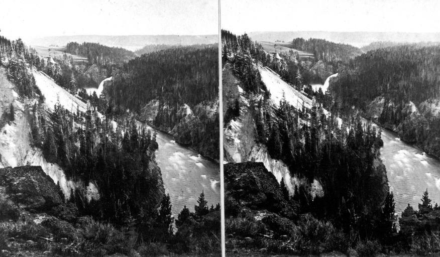 Keywords: stereoscopic stereophotography stereophotographs historical usgs history geology mapping black and white blackandwhite bnw stereograph blackandwhite outdoor monochrome black and white Yellowstone National Park, Wyoming. Upper Falls of the Yellowstone River. 1871.U.S. Geological and Geographical Survey of the Territories (Hayden Survey). Stereoscopic view. Yellowstone National Park, Wyoming. Upper Falls of the Yellowstone River. 1871.U.S. Geological and Geographical Survey of the Territories (Hayden Survey). Stereoscopic view.