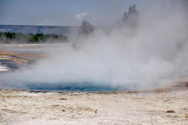 Keywords: yellowstone national park wyoming usa landscape scenery tourist attraction erosion geyser nature volcanic minerals water steam volcanism hot geothermal deep blue pond colorful