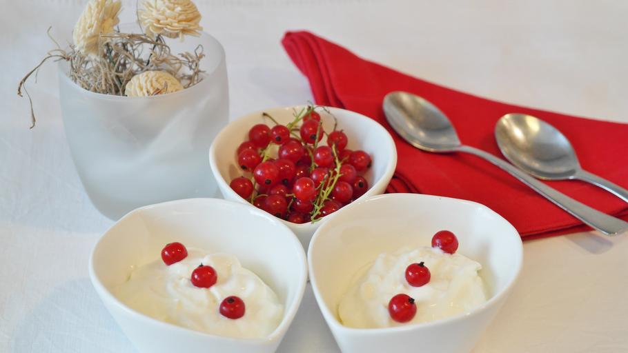 Keywords: yogurt currants dessert cream milk product milk berries sugar food fruits sweet red white frisch low-calorie delicious eat