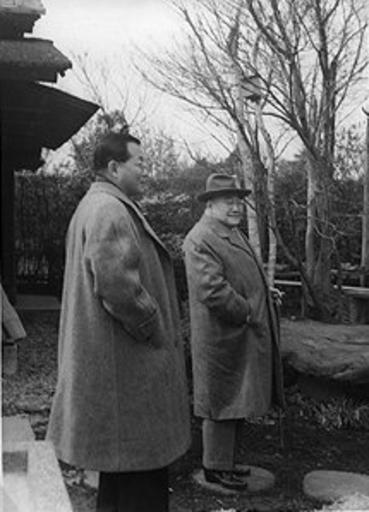 Keywords: Yoshida and Aso at Kyuka-en.jpg ˆ’ ja å‰ç”°èŒ‚å…ƒç·ç†ï¼ˆå³ï¼‰ã¨å¥³å©¿ã®éº»ç”Ÿå¤ªè³ å‰è¡†è°é™¢è°å“¡ã ‚<br /> en Former Japanese Prime Minister Shigeru Yoshida 1878 “1967 in office 1946 “57 and 48 “54 and his son-in-law Rep Takakichi Aso http //park zero ad jp/~zbj65728/celebrities/yoshida/kyukaen/kyukaen htm 1955å¹´2æ ˆ9æ—¥ / 9 February 1955 ä¹ é žå ’ / KyÅ«ka-en PD-Japan-oldphoto <gallery> Image Yoshida and Aso at Kyuka-en_cropped jpg a cropped version </gallery> Shigeru Yoshida |