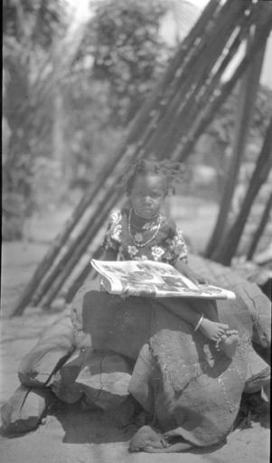 Keywords: daily news abyssinian expedition dailynewsabyssinianexpedition expedition wilfred osgood wilfredosgood louis agassiz fuertes louisagassizfuertes c. suydam cutting csuydamcutting jack baum jackbaum alfred m. bailey alfredmbailey 1926 1927 africa ethiopia abyssinia collection mammals birds specimen collection specimencollection blackandwhite monochrome outdoor black and white Young girl in a flower print dress, wearing necklace and anklets, holding a newspaper while sitting on burlap sack. 1926. Name of Expedition: Daily News Abyssinian Expedition Participants: Wilfred Osgood, Louis Agassiz Fuertes, C. Suydam Cutting, Jack Baum, Alfred M. Bailey Expedition Start Date: September 7, 1926 Expedition End Date: May 20, 1927 Purpose or Aims: Zoology Mammals and Birds Location: Africa, Ethiopia [Abyssinia] Original material: 5x7 inch interpositive film Digital Identifier: CSZ54197 Learn more about The Field Museum's Library Photo Archives. Young girl in a flower print dress, wearing necklace and anklets, holding a newspaper while sitting on burlap sack. 1926. Name of Expedition: Daily News Abyssinian Expedition Participants: Wilfred Osgood, Louis Agassiz Fuertes, C. Suydam Cutting, Jack Baum, Alfred M. Bailey Expedition Start Date: September 7, 1926 Expedition End Date: May 20, 1927 Purpose or Aims: Zoology Mammals and Birds Location: Africa, Ethiopia [Abyssinia] Original material: 5x7 inch interpositive film Digital Identifier: CSZ54197 Learn more about The Field Museum's Library Photo Archives. Young girl in a flower print dress, wearing necklace and anklets, holding a newspaper while sitting on burlap sack. 1926.