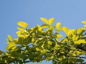 MAKE A MEME View Large Image young leaves spring persimmon oyster blue sky branch arboretum