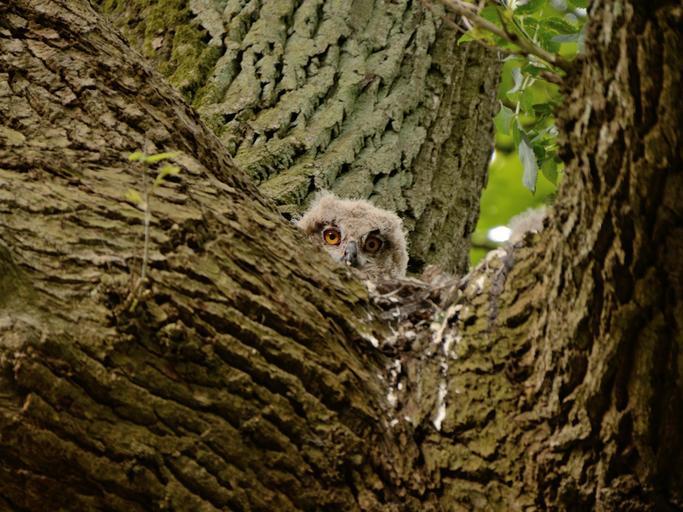 Keywords: young owl owl's nest duvenstedter brook oak tree
