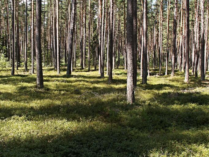 Keywords: young pine forest sun shadow tribes trees bilberry brusinční