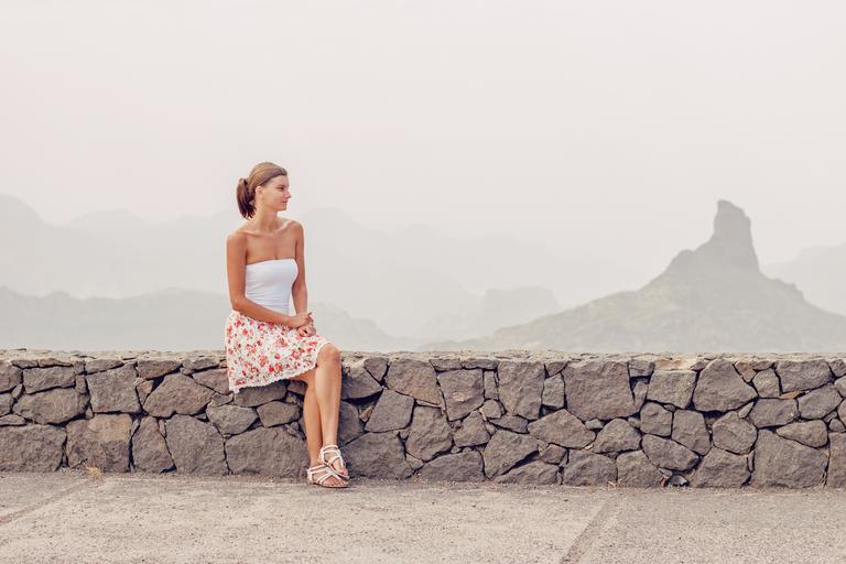 Keywords: young woman excursion naturally rocks mountains woman gran canaria canary islands