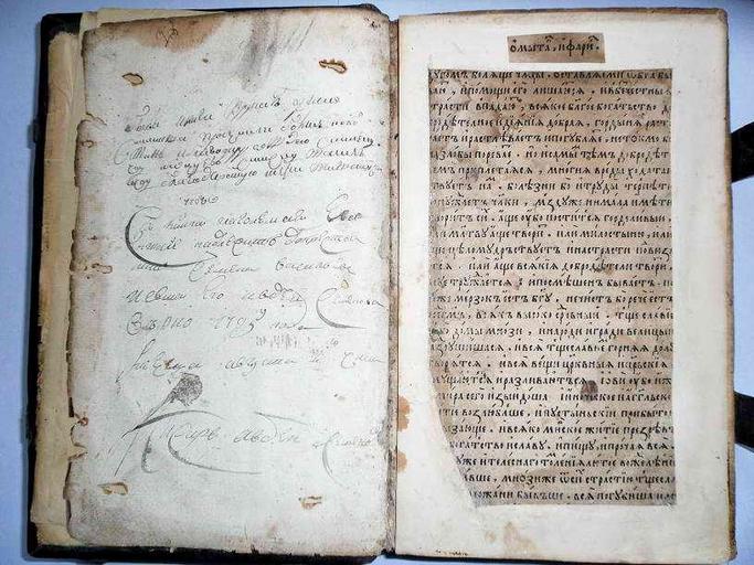 | Keywords: Zabludawskae Evangelle — Razvarot 1795.Jpg Заблудаўскае Эвангельле 1568 1569 а пе шым уклееным а кушы запіс аднаго з уладальнікаў датаваны 1795 окам Commonist http //ww2 ru/forum/index php showtopic 190053 2011-02-27 13 02 32 be-x-old Іван Феда овіч be-x-old Пёт а сьціславец PD-old Zabłudow Gospel |
