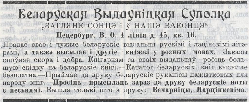 | Keywords: Zahlane.jpg be Аб'ява выдавецтва be Загляне сонца і ў наша аконца 1909 аша ніва Факсім выданне 1909 г Вып 2 н Тэхналогія 1996 С 568 be Загляне сонца і ў наша аконца Custom license marker 2012 03 28 PD-Belarus Uploaded with UploadWizard Zaglyane sonca Files by User Хомелка from be wikipedia |