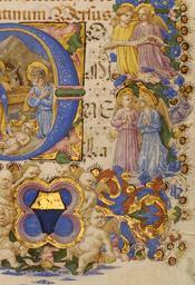 | Keywords: Zanobi di Benedetto Strozzi - Leaf from Adimari Book of Hours - Walters W76715R - Obverse Detail.jpg ink paint gold parchment cm 13 4 9 4 accession number W 767 15R 28250 The Adimari family Florence ca 1448 family coat of arms on fol 15r Reverend Walter Sneyd prior to December 16 1903 mode of acquisition unknown Sale Sotheby's London December 16 1903 lot 555 note on rear paste-down Charles Fairfax Murray December 16 1903 by purchase C W Dyson Perrins 1906 Sale Sotheby's London December 1 1959 lot 80 Walters Art Museum Baltimore December 1 1959 by purchase Museum purchase 1959 The Nativity in Medieval and Renaissance Manuscripts The Walters Art Gallery Baltimore 1987-1988 place of origin Florence Italy Walters Art Museum license 2D Walters MS W767 - Adimari Book of Hours Angels in medieval miniatures |