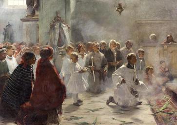 Keywords: Zdzisław Jasiński Palm Sunday 1891.jpg Zdzisław Jasiński Zdzisław Jasiński 1863-1932 Zdzisław Jasiński Zdzisław Jasiński 1863-1932 pl 1891 oil canvas cm 208 3 290 8 object history credit line Z Jasinski Monachium 1891 ~ lr signature / place / date accession number 1 http //www artnet com/artists/lotdetailpage aspx lot_id C14A6FEF0C3EB86C1C7E43288FC15FB6 ArtNet<br/>2 http //www bonhams com/auctions/15252/lot/113/ Bonhams San Francisco 16 05 2007 lot 113 PD-old-auto-1923 1932 DEFAULTSORT Jasinski Zdzislaw; Palm Sunday 1891; Bonhams 2007 Zdzisław Jasiński Altar servers in art Churchgoing in art 1891 paintings 19th-century genre paintings Images from Bonhams |