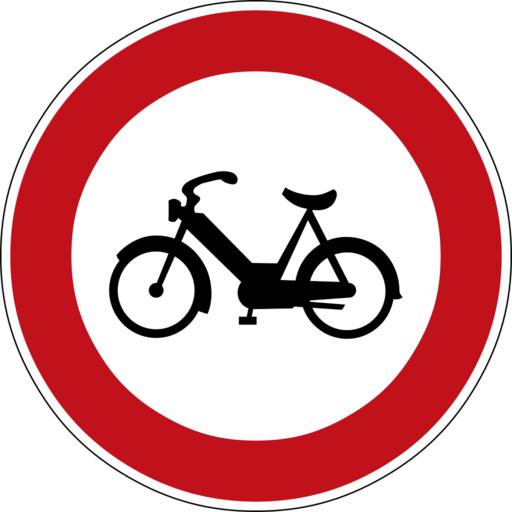 View Original: | Zeichen 260 - Verbot für Kleinkrafträder und Fahrräder mit Hilfsmotor.svg (877x877) | |||