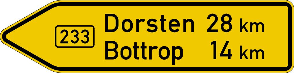 Keywords: Zeichen 415-10 - Pfeilwegweiser auf Bundesstraßen (linksweisend), StVO 2013.svg Zeichen 415-10 Pfeilwegweiser auf Bundesstraßen linksweisend StVO 1992 Sign No 415-10 direction sign on Federal Roads own Mediatus 2016-04-08 + Signs <gallery> File Zeichen 415 - Wegweiser auf Bundesstraßen StVO 1970 svg </gallery> User Mediatus/no-new-version Cc-zero PD-VzKat Guide road signs in Germany 415-10 svg SVG road signs in Germany 415-10 svg Zeichen 415 Bundesstraße 233 Diagrams of direction road signs of Germany 2013 set 415-10 svg Dorsten Bottrop |