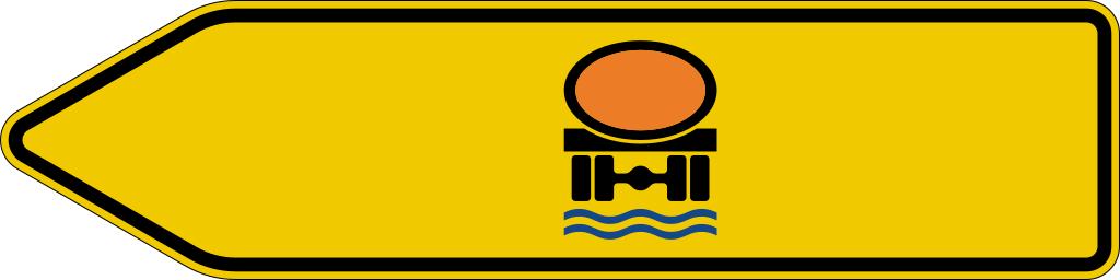 View Original:Zeichen 421-12 - Wegweiser für Fahrzeuge mit wassergefährdender Ladung (linksweisend), StVO 1992.svg (968x242)