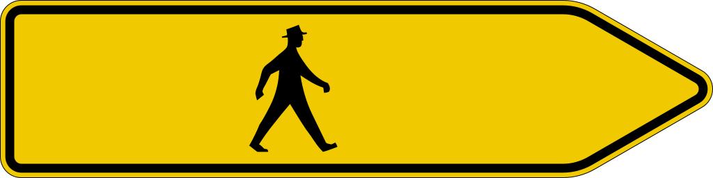 View Original: | Zeichen 421 – Wegweiser für bestimmte Verkehrsarten (Fußgänger), StVO 1970.svg (1215x304) | |||