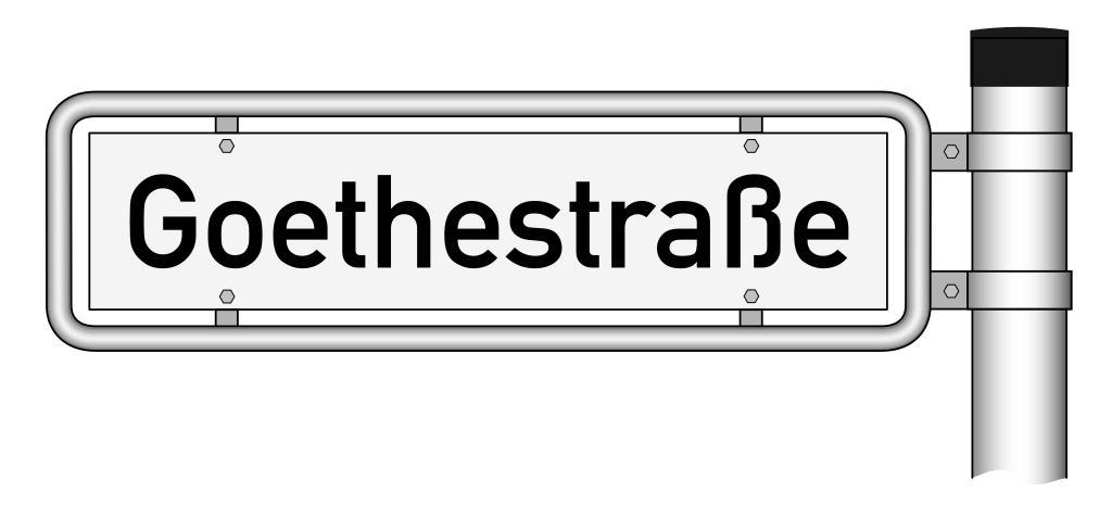 Keywords: Zeichen 437.svg Zeichen 437 “ Straßennamenschilder Das Schild erhielt bereits in der StVO von 1970 die Zeichennummer 437 Bundesgesetzblatt Jahrgang 1970 Nr 108 S 1601 Tag der Ausgabe Bonn 5 Dezember 1970 und wird seither unverändert eingesetzt Sign No 437 “ street name Other version Image Zeichen 437-3d svg sign 437 in 3-dimensional illustration Image taken from the website of the Bundesamt for Straßenverkehr Federal Office for Road Traffic This image is not copyrighted because it is part of the de Straßenverkehrsordnung StVO; German Road Regulations or of the Verkehrszeichenkatalog VzKat; Official Road Sign Catalogue own Andreas06 29 Juli 2006 Ersthochladedatum PD-GermanGov Cc-zero PD-VzKat Diagrams of direction road signs of Germany 437 svg Diagrams of direction road signs of Germany 1992 set 437 svg Goethe streets Zeichen 437 |
