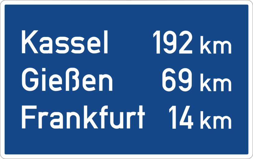 Keywords: Zeichen 453 - Autobahn - Entfernungstafel, StVO 1970.svg de Zeichen 453 Autobahn - Entfernungstafel Sie gibt hinter jeder Ausfahrt Abzweigung und Kreuzung die Entfernungen zur jeweiligen Ortsmitte an; Quelle Bundesgesetzblatt Jahrgang 1970 Nr 108 S 1602 Tag der Ausgabe Bonn 5 Dezember 1970 Bundesgesetzblatt Jahrgang 1970 Nr 108 S 1602; Zeichnung und Interpretation von Mediatus Mediatus 2013-08-06 Herstellungsdatum other fields + Signs User Mediatus/no-new-version Cc-zero PD-Vz historisch SVG road signs in Germany 453 svg German language signs 453 svg Diagrams of direction road signs of Germany 1971 set 453 svg Diagrams of motorway road signs of Germany 1971 set 453 svg Distance road signs |
