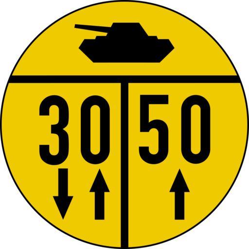 Keywords: Zeichen militärische Lastenklasse - Panzer, neuere Version.svg de Zeichen militärische Lastenklasse an Brückenbauwerken befestigten Uferbereichen etc hier Kettenfahrzeuge Das Sinnbild žPanzer zeigt die neuere Version Ab 1993 wurden die diese Zeichen auf Autobahnen abgebaut Seit 2009 ordnet das Bundesverteidigungsministerium die Beschilderung nicht mehr an Fristen für den Abbau sind nicht ausgegeben worden Farbton des Schildes RAL-Verkehrsgelb Nicht in der StVO aufgeführt aber vom Bundesverkehrsministerium veröffentlichtes Zeichen own selbst gezeichnet von Mediatus Mediatus 23 August 2015 Herstellungsdatum v Cc-zero PD-GermanGov Diagrams of historic road signs of Germany 1992 set Military road signs in Germany Diagrams of road signs of Germany Military vehicle-related road signs |