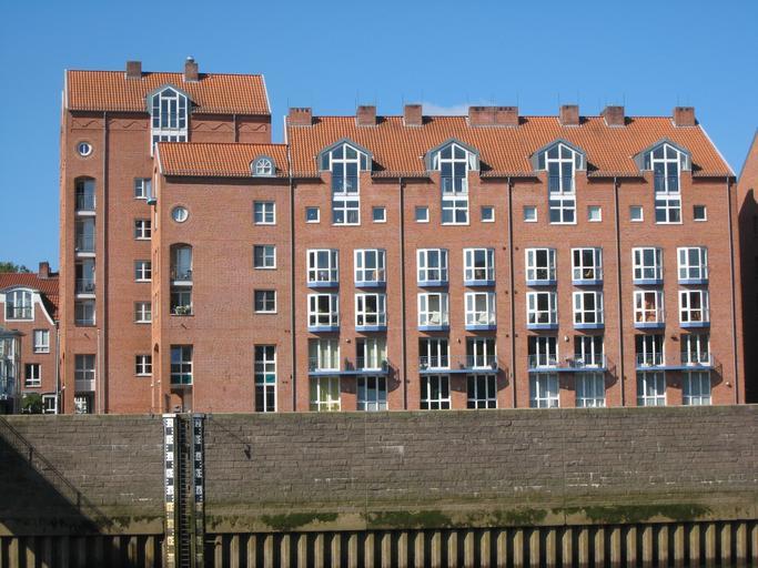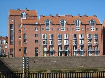 Keywords: Zeile 3 Weseransicht.jpg en View of building 3 across the river Weser de Teerhof in Bremen Blick über die Weser auf Zeile 3 own Caspar Herbert 2011-04-02 Cc-zero Brick buildings in Bremen