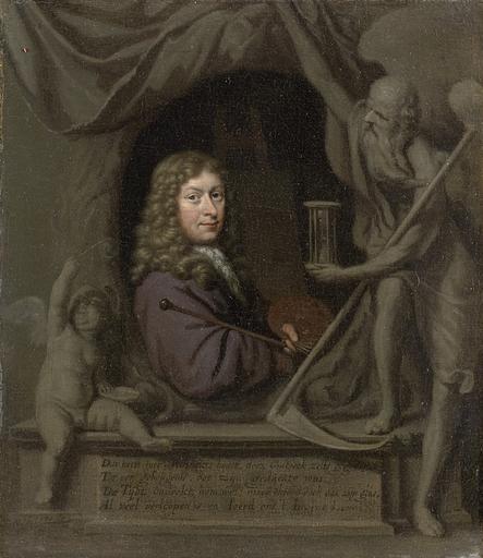 Keywords: Zelfportret Rijksmuseum SK-A-4232.jpeg accession number SK-A-4232 nl Zelfportret van de schilder Michiel van Musscher Zittend ten halven lijve in een venster gevormd door draperieën en een basement Palet penselen en schildersstok in de linkerhand Links een bellen blazende putto rechts staat de Tijd met zeis en zandloper Pendant van SK-A-4233 drager Height cm 20 5 drager Width cm 17 8 exhibition history Institution Rijksmuseum Technique oil canvas object history Acquisition 1973 object type Potential derivatives exist check http //commons wikimedia org/w/index php search Rijksmuseum+SK-A-4232 this search PD-US PD-old-100 Data and photography rights All data and all images made available through the API are either in the public domain or are subject to a CC0 license https //www rijksmuseum nl/en/api/terms-and-conditions-of-use cc-zero place of creation http //www rijksmuseum nl/collectie/SK-A-4232 Self-portrait Q17338791 Uploaded with GWToolset Zelfportret Rijksmuseum SK-A-4232 http //www rijksmuseum nl/media/assets/SK-A-4232 Images uploaded by Fæ Images from the Rijksmuseum Paintings by Michiel van Musscher in the Rijksmuseum Amsterdam Michiel van Musscher Self-portraits |