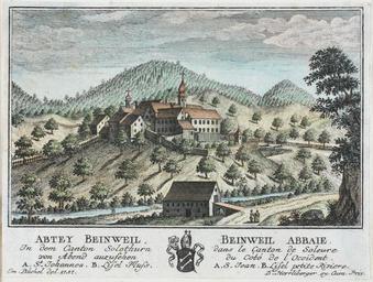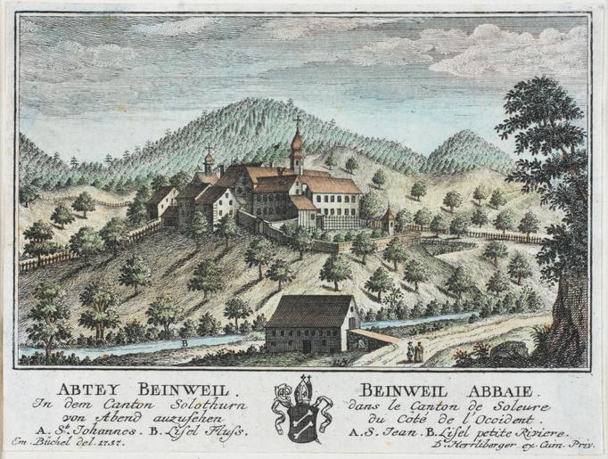 Keywords: Zentralbibliothek Solothurn - ABTEY BEINWEIL In dem Canton Solothurn von Abend anzusehen A St Johannes B Lisel Fluss WappenBEINWEIL ABBAIE Dans le Canton de Soleure du Côté de lOccident A S Jean B Lisel petite Riviere - a0244.tif Artwork Creator Emanuel Büchel Blick von W auf das Kloster Beinwil im Vordergrund die Lüssel und die Passwangstrasse im Hintergrund die Chastenflue Staffagefiguren View from west of the Beinwil Abbey in the foreground is the Lüssel Passwangstrasse in the background Chastenflue Decorative figures ABBAIE de BEINWEIL Dans le Canton de Soleure du Côté de l'Occident between 1757 1758 Technique Copper engraving paper colored Size mm 145 84 institution Zentralbibliothek Solothurn object history credit line accession number Call number a0244 Zentralbibliothek Solothurn Public domain Information field ZBS form heading Vedute Information field ZBS form heading Landschaftsbild Zentralbibliothek Solothurn PD-old-70-1923 Historical images of the Beinwil Abbey Emanuel Büchel Selection photos GLAMWiki-Switzerland |
