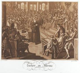 Keywords: Zentralbibliothek Solothurn - Luther in Worms - aa0470.tif Artwork Creator Martin Disteli In einer mittelalterlichen Halle verteidigt Luther seine Sache vor dem König und seiner Entourage sowie vielen weiteren anwesenden Männern between 1825 1833 Technique Aquatint paper brown Size mm 406 370 institution Zentralbibliothek Solothurn object history credit line accession number Call number aa0470 Zentralbibliothek Solothurn Public domain Information field ZBS form heading Illustration Information field ZBS form heading Historienbild Zentralbibliothek Solothurn PD-old-70-1923 Historical images of Solothurn people Works by Martin Disteli Paintings of Martin Luther Reichstag zu Worms |
