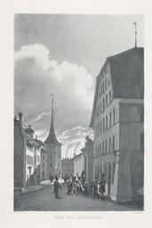 Keywords: Zentralbibliothek Solothurn - RUE DE LARSENAL - a0052.tif Zeughausgasse von E Blick auf Altes Zeughaus mit Kasernentor und Treppenturm des Rathauses Militärstaffage between 1830 1840 Aquatinta Size mm 135 148 institution Zentralbibliothek Solothurn object history credit line accession number Call number a0052 Zentralbibliothek Solothurn Public domain Information field ZBS form heading Vedute Information field ZBS form heading Strassenbild Zentralbibliothek Solothurn PD-old-70-1923 Historical images of Solothurn Franz Graff Rathaus Solothurn Altes Zeughaus in Solothurn |