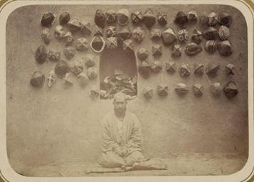 | Keywords: Zeravshan District. City of Samarkand. Vendor of Yarmulkas and Fur Hats WDL11155.png Artwork ru Кун Александ Людвигович 1840 1888 гг fr Kun Aleksandr L 1840-1888 en Kun Aleksandr L 1840-1888 zh 亚历山大·L· ,1840-1888 年 pt Kun Aleksandr L 1840-1888 ar كُن، ألكسندر ل ، 1840-1888 es Kun Aleksandr L 1840-1888 ru Зе авшанский ок уг Го од Сама канд П одавец е молок и меховых шапок fr District de Zeravchan Ville de Samarcande Marchand de yarmulkes et de chapeaux de fourrure en Zeravshan District City of Samarkand Vendor of Yarmulkas and Fur Hats zh 扎拉夫桑区 撒马尔罕城 犹太 顶小帽和毛皮帽子商贩 pt Distrito de Zeravshan Cidade de Samarcanda Vendedor de Yarmulka e de chapéus de pele ar مقاطعة زرافشان مدينة سمرقند بائع قبعات اليَرْمَلكة وقبعات الفراء ru Эта фотог афия входит в этног афическую часть <em> Ту кестанского альбома </em><em></em> всесто оннего исследования Цент альной Азии п едп инятого после того как в 1860-х годах в егионе установилось господство Российской импе ии Альбом созданный по аспо яжению гене ала Константина Пет овича фон Кауфмана 1818 1882 годы пе вого гене ал-губе нато а оссийского Ту кестана состоит из четы ех частей в шести томах «Часть а хеологическая» два тома «Часть этног афическая» два тома «Часть п омысловая» один том и «Часть исто ическая» один том Основным составителем альбома был оссийский востоковед Александ Людвигович Кун аботавший совместно с иколаем Венедиктовичем Богаевским В альбоме п едставлено около 1200 фотог афий а также а хитекту ные планы аква ельные исунки и ка ты «Часть этног афическая» включает в себя 491отдельную фотог афию на 163 листах а фотог афиях изоб ажены п едставители азличных на одов егиона листы 1 33 повседневная жизнь и итуалы листы 34 91 а также виды де евень и го одов уличные то говцы и комме ческая деятельность листы 92 163 <br>База ы; Одежда и платье; Этног афические фотог афии; Шляпы; Головные убо ы; Рынки; То говцы; Фотог афические исследования; По т етные фотог афии; По т еты; Уличные то говцы; Тю кские на оды fr Cette photographie est extraite de la partie ethnographique de l'<em>Album du Turkestan</em> étude visuelle complète de l'Asie centrale entreprise après que l'Empire russe prit le contrôle de la région dans les années 1860 Commandé par le général Konstantin Petrovich von Kaufman 1818 1882 premier gouverneur général du Turkestan russe l'album est composé de six volumes en quatre parties la partie archéologique deux volumes la partie ethnologique deux volumes la partie sur les métiers un volume et la partie historique un volume L'album fut essentiellement compilé par l'orientaliste russe Aleksandr L Kun assisté de Nikolai V Bogaevskii Il comporte près de 1200 photographies et inclut également des plans architecturaux des dessins à l'aquarelle et des cartes La partie ethnographique compte 491 photographies sur 163 planches montrant des individus des différentes peuplades de la région planches 1 à 33 des scènes de la vie quotidienne et des rites planches 34 à 91 ainsi que des vues de villages et de villes de vendeurs ambulants et d'activités commerciales planches 92 à 163 <br>Bazars; Vêtements et habits; Photographies ethnographiques; Chapeaux; Coiffures; Marchés; Marchands; Inventaires photographiques; Portraits photographiques; Portraits; Vendeurs ambulants; Peuples turciques en This photograph is from the ethnographical part of <em>Turkestan Album</em><em> </em>a comprehensive visual survey of Central Asia undertaken after imperial Russia assumed control of the region in the 1860s Commissioned by General Konstantin Petrovich von Kaufman 1818 82 the first governor-general of Russian Turkestan the album is in four parts spanning six volumes Archaeological Part two volumes ; Ethnographic Part two volumes ; Trades Part one volume ; and Historical Part one volume The principal compiler was Russian Orientalist Aleksandr L Kun who was assisted by Nikolai V Bogaevskii The album contains some 1 200 photographs along with architectural plans watercolor drawings and maps The Ethnographic Part includes 491 individual photographs on 163 plates The photographs show individuals representing the different peoples of the region Plates 1 33 ; daily life and rituals Plates 34 91 ; and views of villages and cities street vendors and commercial activities Plates 92 163 <br>Bazaars; Clothing and dress; Ethnographic photographs; Hats; Headgear; Markets; Merchants; Photographic surveys; Portrait photographs; Portraits; Street vendors; Turkic peoples zh 这张照片出自<em> 其斯 相册 </em>的民族部分,该相册是俄罗斯 国 19 世纪 60 年代取得中亚控制 后, 手制 的 部针对该 区的综合 图像调查记录 相册由俄罗斯驻 其斯 (俄罗斯 国中亚属 的名称)首任 康斯 丁·彼得罗维奇·凡· 夫曼(Konstantin Petrovich von Kaufman,1818 82