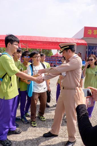 Keywords: Zhan-Hao Hu, ROCN Rear Admiral Handshaking with Student of Kaohsiung Siaogang Senior High School in 2015 Zuoyang Naval Base Open Day 20151024.jpg zh-tw 2015年左營軍港營 開放活動,海軍官校校長胡展豪少將與高雄小港高中學生 念合影後,和學生握手 學生: 和校長握手,明年直接上海官! 副官: 海官可是很難 的 設計對白 2015-10-24 11 07 44 Own 玄史生 other versions 2015 Zuoying Naval Base Open Day Military people of Taiwanese Navy Admirals of the Republic of China Navy Military people and civilians Handshakes involving the military 玄史生写 文庫 Taken with Fujifilm X-T1 Uploaded with UploadWizard cc-zero
