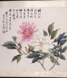 Keywords: Zhang Xiong - Peonies - Walters 35101G.jpg This album of 16 paintings by artists active in Shanghai during the 1860s and 1870s is dedicated to the original owner Mr Xu Hongting The red and white peonies are flowers of the summer months and they are traditionally associated with wishes for prosperity and good fortune In pairing the white and red flowers the artist also inspires thoughts of harmony in marriage and strength within the family between 1860 1880 ink and color on paper mounted on cloth cm 38 9 38 4 accession number 35 101G 77227 Xu Hongting Hsü Hung-t'ing date and mode of acquisition unknown Liu Song-bu Liu Sung-pu Shanghai date and mode of acquisition unknown Panama Pacific International Exposition San Francisco China Pavilion 1915 no 285 Henry Walters city Baltimore Walters Art Museum Henry Walters Acquired by Henry Walters 1915 place of origin Shanghai China Walters Art Museum license 2D Chinese paintings in the Walters Art Museum Zhang Xiong 1803-1886 Media contributed by the Walters Art Museum needs category review |