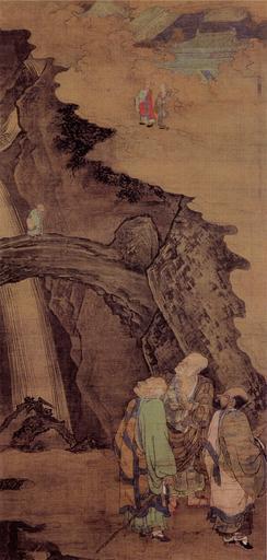 Keywords: Zhou Jichan-Rock Bridge at Tiantai Mountain.jpg en Rock Bridge at Tiantai Mountain - Hanging scroll ink and color on silk 109 4 x 52 4 cm This is part of the 500 Luohan collection zh 五百羅漢 - 軸 - 絹 設色 縱109 4厘米 全橫52 4米 美 弗利爾美術館藏 Zhongguo gu dai shu hua jian ding zu 中国古代书画鑑定组 1997 Zhongguo hui hua quan ji 中国绘画全集 Zhongguo mei shu fen lei quan ji Beijing Wen wu chu ban she Volume 4 Zhou Jichang 周季常 1178 Zhou Jichang Buddhist paintings from China Paintings of the Song Dynasty Arahant Luohan PD-old-100 |