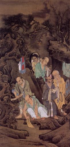 Keywords: Zhou Jichang-Luohan Laundering.jpg en Luohan Laundering - Hanging scroll ink and color on silk 118 x 53 1 cm This is part of the 500 Luohan collection zh 五百羅漢 - 軸 - 絹 設色 縱118厘米 全橫53 1米 美 弗利爾美術館藏 Zhongguo gu dai shu hua jian ding zu 中国古代书画鑑定组 1997 Zhongguo hui hua quan ji 中国绘画全集 Zhongguo mei shu fen lei quan ji Beijing Wen wu chu ban she Volume 4 Zhou Jichang 周季常 1178 Zhou Jichang Buddhist paintings from China Paintings of the Song Dynasty Arahant PD-old-100 |