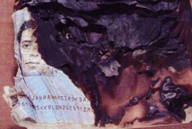 Keywords: Ziad Jarrah Passport Photo.jpg Ziad Jarrah charred passport photo found among the wreckage of United 93 FBI U S Federal Government Ziad Jarrah PD-USGov