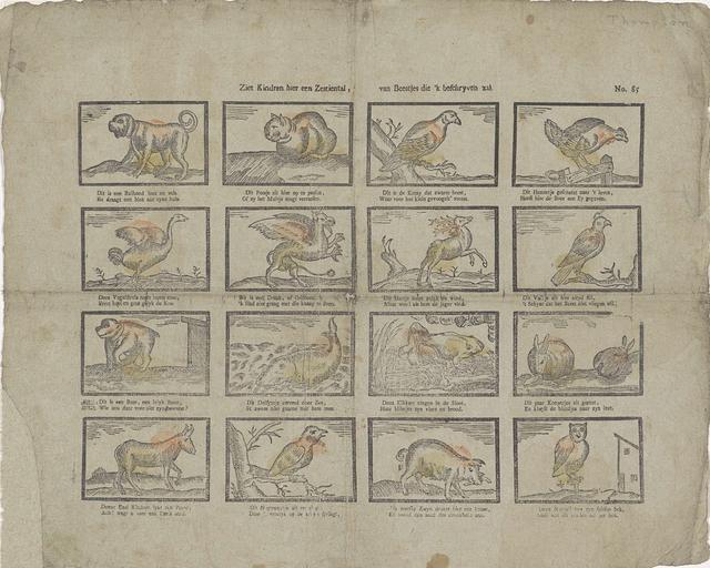 Keywords: Ziet kindren hier een zestiental, van beestjes die 'k beschryven zal.jpeg accession number https //hdl handle net/10934/RM0001 collect 532757; RP-P-1989-185 Creator Jacobus Thompson Thompson Jacobus publisher Blad met 16 voorstellingen van dieren waaronder een poes een kraai een draak een dolfijn en een zwijn Onder elke afbeelding een tweeregelig vers Genummerd rechtsboven No 85 ; Iconclasscode 25FF411; Iconclasscode 25F27 DOLPHIN ; Iconclasscode 25F32 CROW ; Iconclasscode 34B11; Iconclasscode 34B12; Iconclasscode 25F; print; volksprent mm 330 mm 409 exhibition history collector's mark gestempeld; collector's mark gestempeld Institution Rijksmuseum paper; houtsnede object history object type print; volksprent PD-old place of creation Rotterdam place of discovery https //www rijksmuseum nl Ziet kindren hier een zestiental van beestjes die 'k beschryven zal Uploaded with GWToolset Ziet kindren hier een zestiental van beestjes die 'k beschryven zal http //lh5 ggpht com/MEdEg6NBzVTVkLEsccBViXMe74cb_pVpaizLvwMpUpyuR1Lp8HWfPz_mbg8DcWQ7qdXpaQBAfsgOpjp9mreDZgeP_Yc s0 Prints in the Rijksmuseum Amsterdam Unidentified birds in the collection of the Rijksmuseum Amsterdam Birds in art Public domain GWToolset Batch Upload Popular prints in the Rijksmuseum AmsterdamBirdwatching Rijksmuseum |