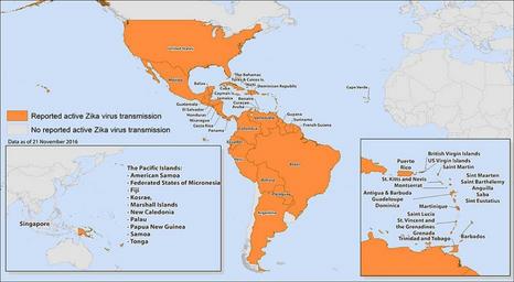 Keywords: Zikamain 112116 930.jpg en All countries and territories with active Zika virus transmission 2016-11-21 http //www cdc gov/zika/geo/active-countries html U S Centers for Disease Control and Prevention other versions PD-USGov 2016 Zika virus outbreak maps |