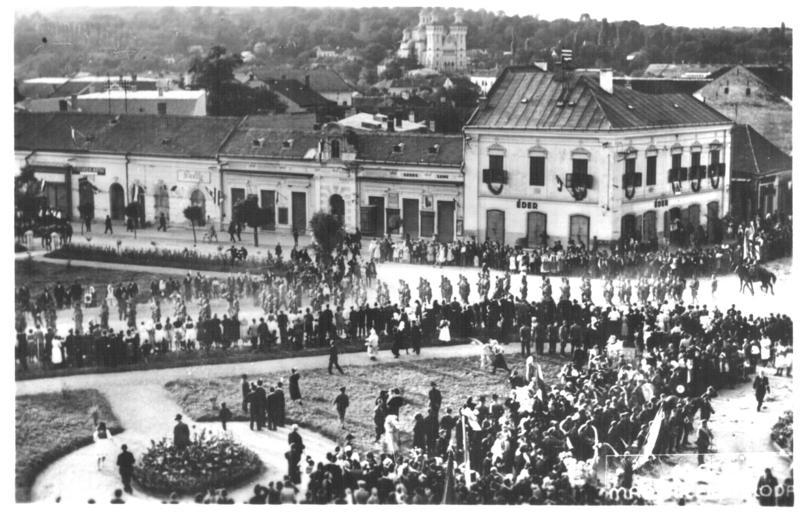 | Keywords: Zilah, 1940. szeptember 9 (1).tif Postcard Iuliu Maniu Square in Zalău on September 8 1940 few days after the Second Vienna Award Hungarian Army troops entering in Zalău The Assumption Cathedral can be seen in background The postcard was sent on September 28 1940 from Zalău 8 septembrie 1940 la cateva zile dupa Dictatul de la Viena trupele Ungariei intra in Zalău hu A fénykép 1940 szeptember 9 -én vasárnap készült a Magyar Királyságban Zilahon 1940 szeptember 9 én Zilahon ünnepélyesen fogadták a bevonuló magyar csapatokat A kép mérete 12 5 cm x 8 cm Hátoldala 2 Szöveg a képeslap hátoldalán Seres-könyvkereskedés ERDÉLY FELSZABADULÁSÁNAK EMLÉKÉRE Zilah 1940 szeptember 8 Sárai Budapest Rotációs Fényképsokszorosító Megjelent korábban a hu wikipedia org-on A fénykép megjelent az Erdély Bevonulás 1940 című kötetben 2013 Pannon-Literatura Kft Kisújszállás 35 oldal Forrás Metapolisz Images A magyar Gyorshadtest alakulatai 1940 szeptember 9 -én érték el Zilahot A fellobogózott város mámoros lelkesedéssel fogadta a bevonuló magyar csapatokat Már órákkal a bevonulás előtt tódult a város apraja nagyja a főtérre A tér középén álltak a fogadóbizottság tagja Kivonultak az ősi Wesselényi Kollégium diákjai is Magasra emelt zászlóval melyet huszonkét évig rejtegettek a románok elől Az ünnepség a Wesselényi szobor előtti téren volt A szobrot a románok eltávolították csak a talapzata maradt meg Esti Kurir Budapest 1940 szeptember 9 ©© Derzsi Elekes Andor Budapest 2014 A kép és filmfelvétel egészben vagy részletekben másolását bármilyen úton történő sokszorosítását és felhasználását a szerző ellenérték nélkül jogutódjaira is kihatóan megengedi Az engedély kiterjed a kereskedelmi célú hasznosításra is Kéri azonban a felhasználás során feltüntetni hogy a kép forrása a Metapolisz Images A Metapolisz sorozat valamennyi képe és filmje Creative Commons alatti valamint kereskedelmi - for profit - célra is felhasználható Ajánlott hivatkozás Derzsi Elekes Andor Metapolisz DVD line http //nektar oszk hu/en/manifestation/2623913 2014-01-17 13 37 47 Metapolisz Images Seres Könyvkereskedés Zilah scanned by Derzsi Elekes Andor Custom license marker 2014 01 17 PD-old Uploaded with UploadWizard Metapolisz Esti Kurir Wesselényi Kollégium History of Zalău Assumption Cathedral Zalău 8 September Northern Transylvania 1940 in Hungary 1940 in Romania Military people of Hungary Squares in Romania Squares in Hungary Massacres in Romania September 1940 in Europe Buildings in Zalău Streets in Zalău 1940 postcards Postcards of Hungary Historical images of Hungary People of Zalău 1940 in Zalău Squares in Zalău Black and white photographs of Zalău Politics of Zalău Photos by Elekes Andor |