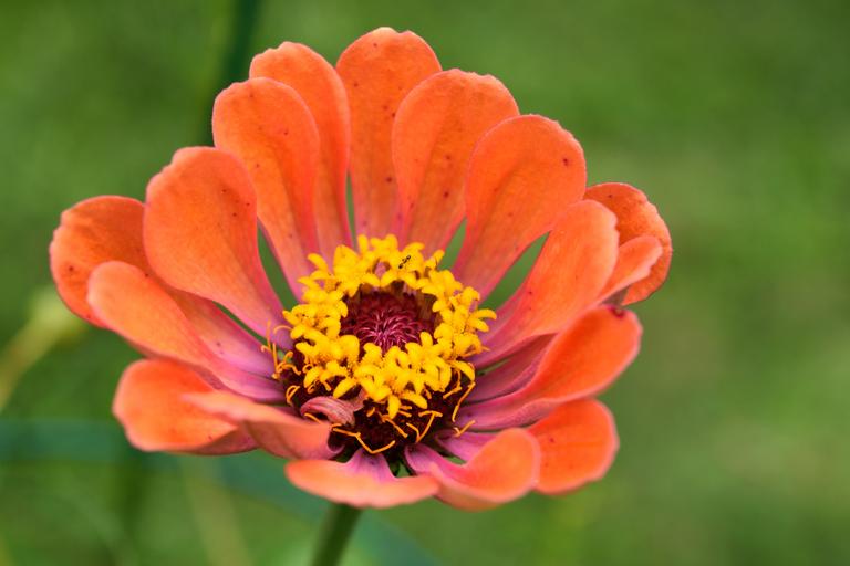 Keywords: zinnia flower bloom floral petal bright garden orange