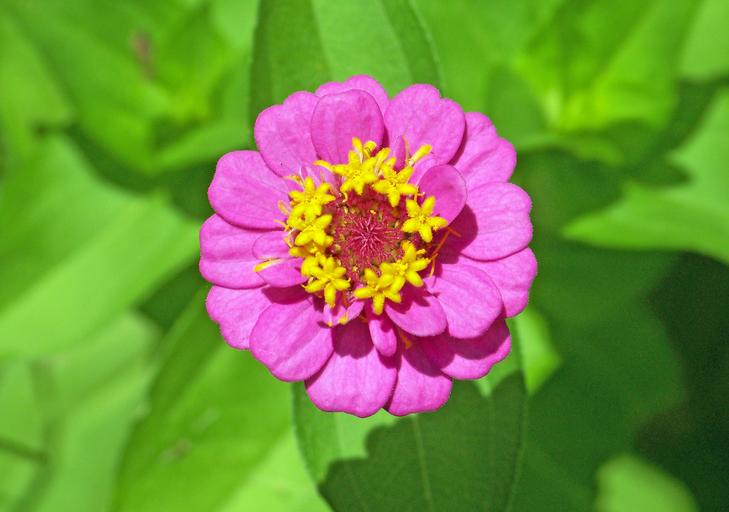 Keywords: zinnia flower pink yellow asteracea floral blossom color blooming flora gardening plant