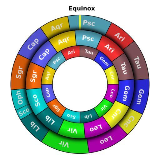 Keywords: Zodiac-march-equi-EN.svg en Three zodiacs the tropical fixed inner circle the sidereal zodiac and the astronomic zodiac outer circle es Tres zodiacos el fijo tropical círculo interno el zodiaco sideral y el zodiaco atronómico círculo externo en Chart based on information from The American Ephemeris and Nautical Almanac es Gráfico con base en información de American Ephemeris and Nautical Almanac own Caliver 2011-01-30 Cc-zero Astronomical diagrams |