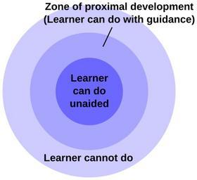 Keywords: Zone of proximal development.svg en Illustration of the zone of proximal development the central region where a child can complete a task with adult guidance but not without it This represents the borders of their current capability 2012-08-27 own Dcoetzee cc-zero Uploaded with UploadWizard Cognitive science |