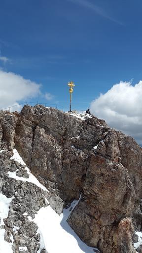 Keywords: zugspitze summit cross summit cross zugspitze massif mountains alpine weather stone wetterstein massif ostallgäu allgäu landscape rock view height steep rocky germany europe