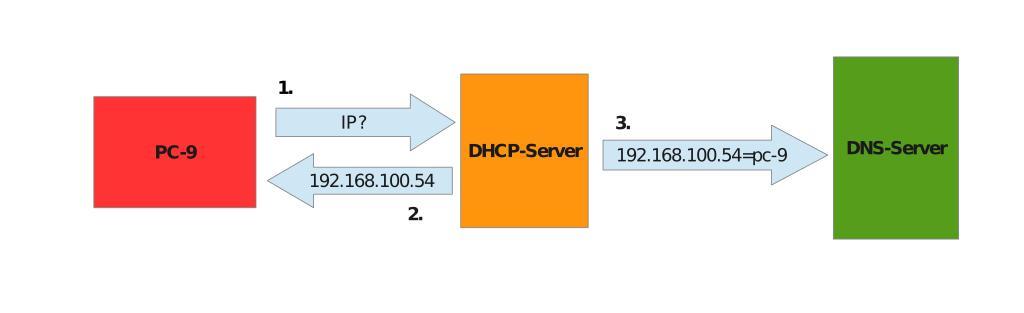 Keywords: Zusammenspiel von DDNS und DHCP.svg de Im Bild erkennt man das Zusammenspiel zwischen DDNS und DHCP 1 Der Client fordert vom DHCP-Server eine IP-Adresse an 2 Der DHCP-Server weist dem Client eine IP-Adresse zu 3 Die IP-Adresse und der Hostname werden vom DHCP-Server dem DNS zur Registrierung übergeben en In the picture you see how ddns works 2012-12-10 17 44 30 own Deadlyhappen cc-zero Uploaded with UploadWizard DHCP DDNS DynDNS Domain name system |