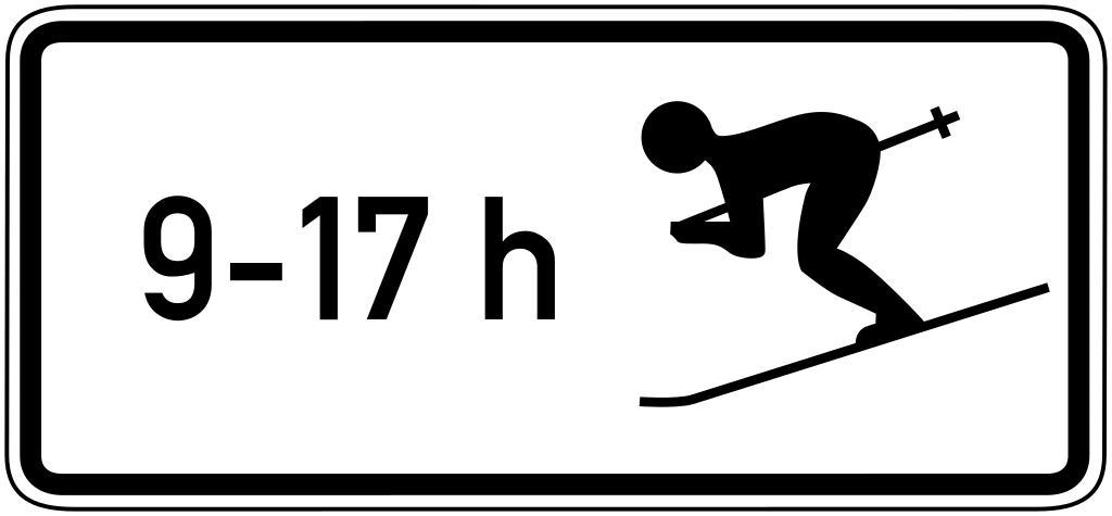 Keywords: Zusatzschild zu Zeichen 101 - eingeschränkter Wintersport auf dieser Straße, StVO 1970.svg de Zusatzschild zu Zeichen 101 zeitlich beschränkter Wintersport auf dieser Straße zwischen 9-17 h Quelle Bundesgesetzblatt Jahrgang 1970 Nr 108 S 1582 Tag der Ausgabe Bonn 5 Dezember 1970 own gezeichnet von Mediatus Mediatus 31 Mai 2013 Herstellungsdatum Cc-zero PD-VzKat Diagrams of danger warning road signs of Germany 1971 set 101 svg Diagrams of additional signs of Germany 1971 set 101 svg Skier road signs SVG road signs in Germany |