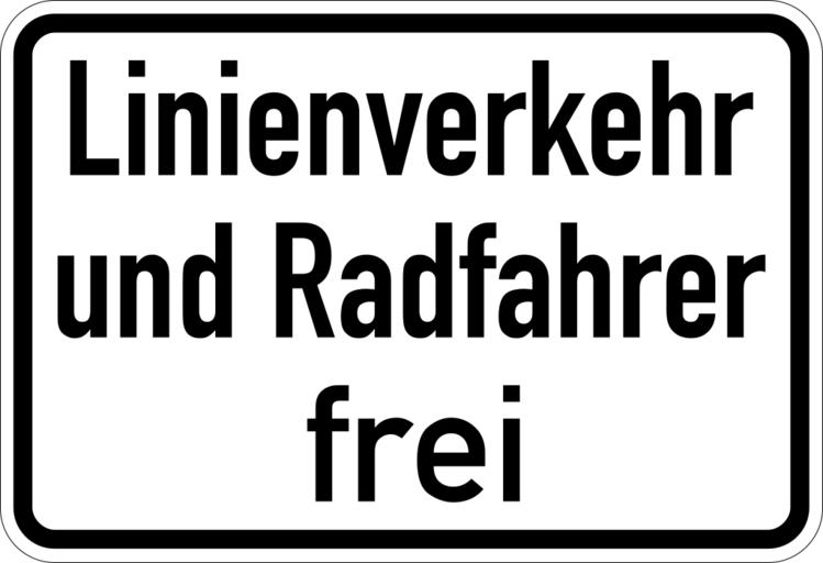 | Keywords: Zusatzzeichen - Linienverkehr und Radfahrer frei.svg de Zusatzzeichen Linienverkehr und Radfahrer frei; gesehen 2013 unmittelbar an dem stadteinwärts führenden beschrankten Bahnübergang am Bahnhof Wolfratshausen; hergestellt laut RAL-Aufkleber auf der Rückseite 1983 own Mediatus 06 September 2013 Herstellungsdatum + Signs User Mediatus/no-new-version Cc-zero PD-VzKat Diagrams of historic road signs of Germany German language signs SVG road signs in Germany | ||||