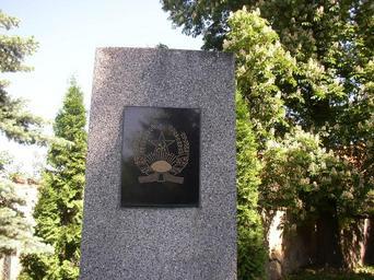 Keywords: Zvoleneves KL CZ WWII memorial 008.jpg Pomník vojákům Rudé armády ve Zvoleněvsi okres Kladno Objekt se nalézá při silnici pod schodištěm ke kostelu Symbol v horní části pomníku stylem velmi volně upomínající státní znak SSSR Memorial to Red Army soldiers who perished during liberation in 1945 in Zvoleněves Kladno District Czech Republic Upper part features a symbol loosely resembling state emblem of the USSR The memorial is located besides road a few steps below church There are two inscriptions in Russian surprisingly containing minor inconsistencies in grammar and spelling and one inscription in Czech Five NCOs left plaque and five soldiers of rank and file right plaque are listed by surname The middle plaque reads Soil from the Sokolovo battlefield was placed on May 8 1973 for eternal memory of combat friendship of peoples of the Soviet Union and Czechoslovakia <small>This act of soil transfer alludes to Czechoslovak soldiers fallen during liberation of Ukraine thus reflecting symbolical reciprocity of their sacrifice </small> 0 cellpadding 15 cellspacing 0 style text-align left; background silver; color yellow - text-align center; colspan 3 0 cellpadding 15 cellspacing 0 style text-align left; background black; color yellow - text-align center; СЕРЖА ТИ <small><nowiki>sic</nowiki></small> РЕВА - БО ГОРЕ КО <br /> ФИРСОВ - ДЕРЖАВЕЦ - ЛИЛИКОВИЧ 0 cellpadding 15 cellspacing 0 style text-align left; background black; color yellow - text-align center; NA VĚČNOU PAMÁTKU <br /> BOJOVÉ DRUŽBY NÁRODŮ <br /> SSSR A ČSSR <br /> POLOŽENA 8 5 1973 PRSŤ <br /> Z BOJIŠTĚ U SOKOLOVA 0 cellpadding 15 cellspacing 0 style text-align left; background black; color yellow - text-align center; РЯДОВОЙ ТРОЦЕ КО - КАЗАРИ <br /> ГУБИ СКИЙ - АСЕ Я - ЩЛЯХОВОЙ Zvoleněves World War II memorials in Kladno District Red Army monuments in the Czech Republic Symbols of the Soviet Union